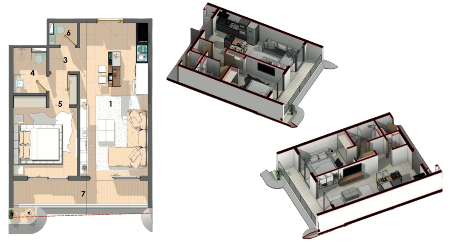 Légerement plus spacieux, cet appartement offre une solution pratique avec une disposition intelligente pour un confort quotidien.