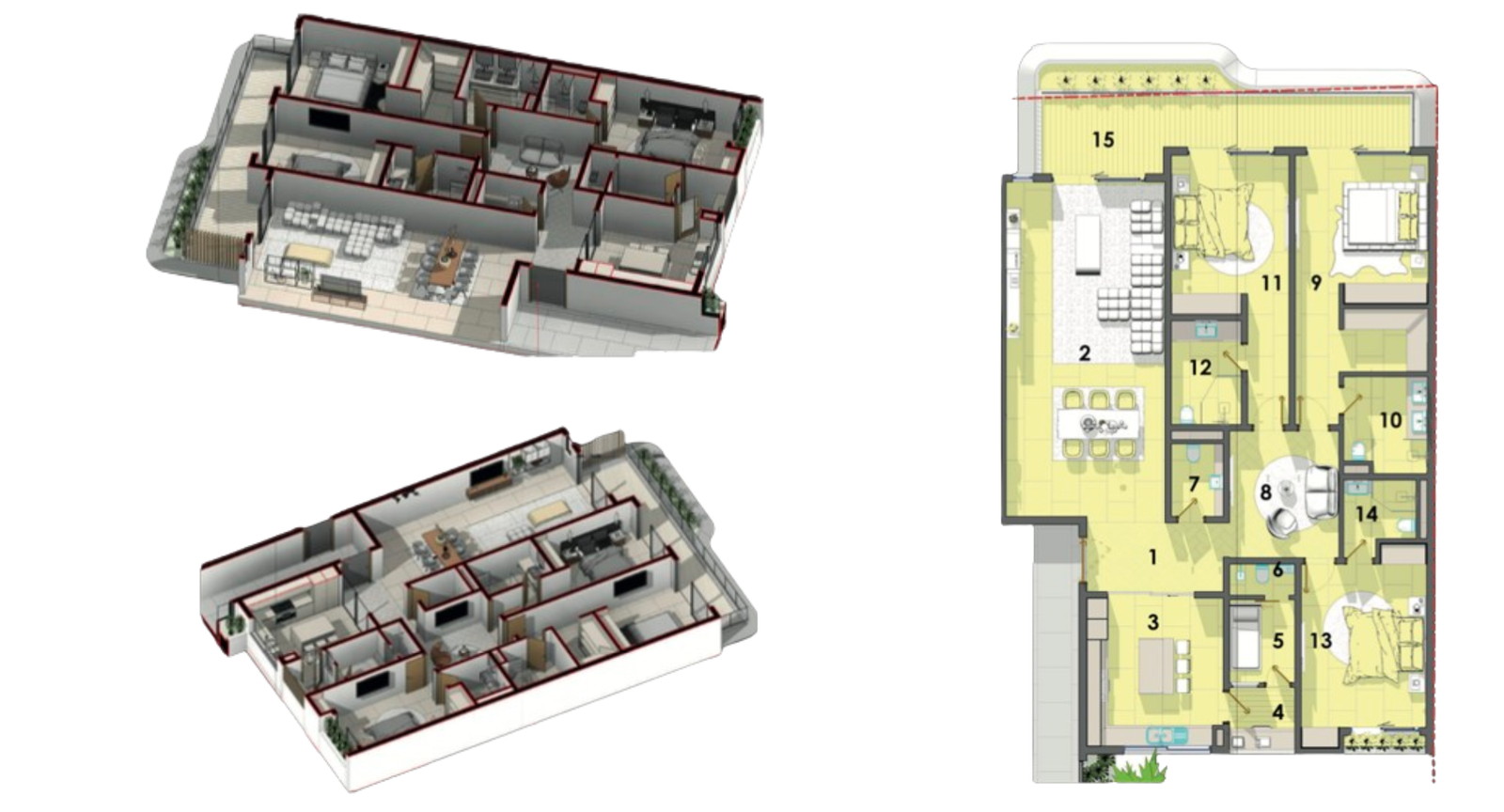 Découvrez notre somptueux Penthouse A, un espace de vie exceptionnel qui combine élégance, luxe et fonctionnalité. Parfaitement agencé, ce penthouse offre un cadre de vie prestigieux, idéal pour les résidents exigeants à la recherche d’un confort inégalé et de commodités haut de gamme.