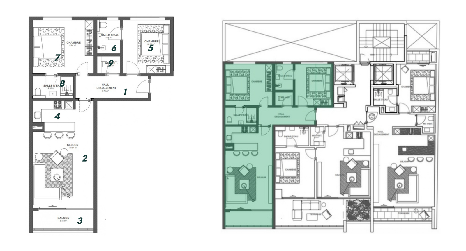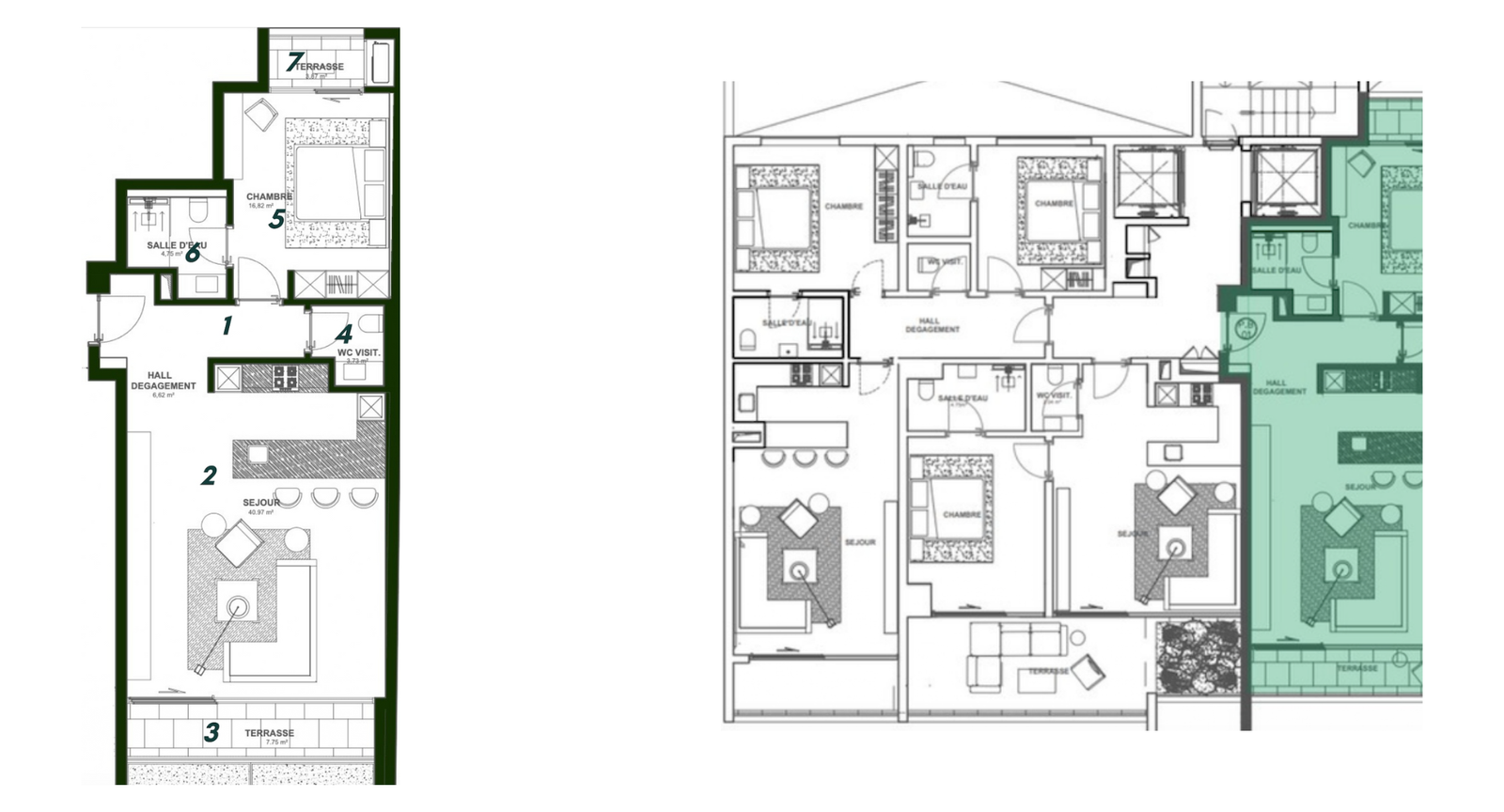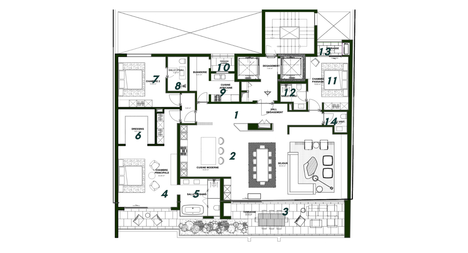 Découvrez notre somptueux penthouse, un véritable chef-d’œuvre architectural offrant une expérience de vie luxueuse. Le spacieux séjour et sa cuisine moderne équipée est aménagé avec soin, pour accueillir vos convives. Les larges baies vitrées baignent l’espace de lumière naturelle, créant une atmosphère chaleureuse et accueillante